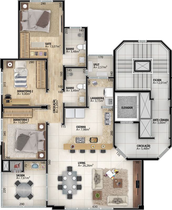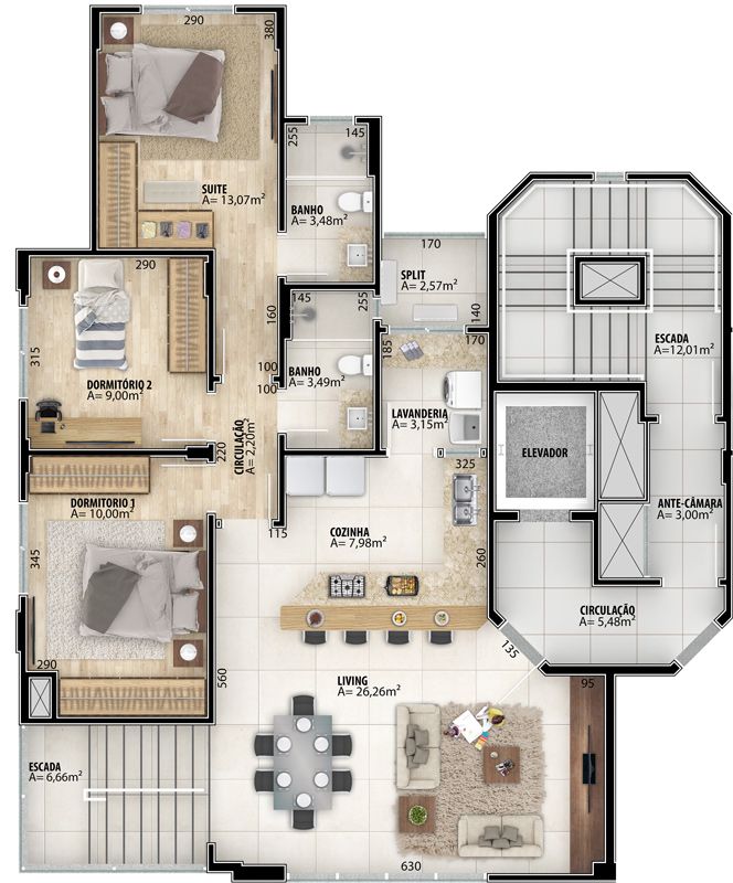 - Área Privativa: 101,84 m²