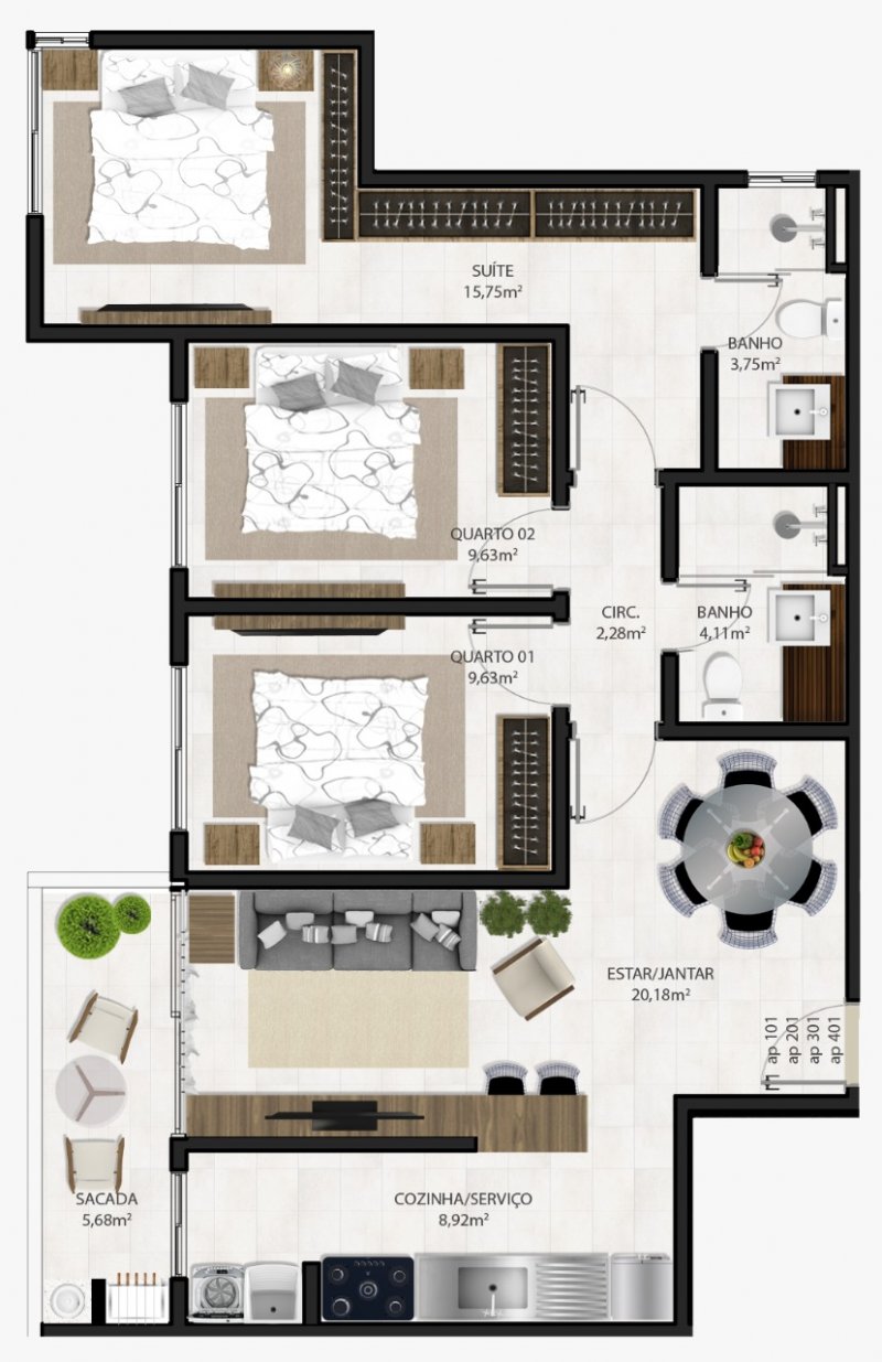 Um cenário incrível. Aqui cada ambiente foi projetado para incorporar a energia do oceano no seu dia-a-dia. A área de lazer fica no último andar do edifício e possui uma vista sem igual, para que você não perca nenhum momento.