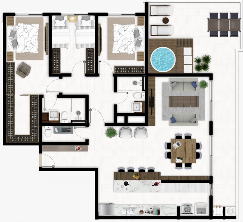 Um cenário incrível. Aqui cada ambiente foi projetado para incorporar a energia do oceano no seu dia-a-dia. A área de lazer fica no último andar do edifício e possui uma vista sem igual, para que você não perca nenhum momento.