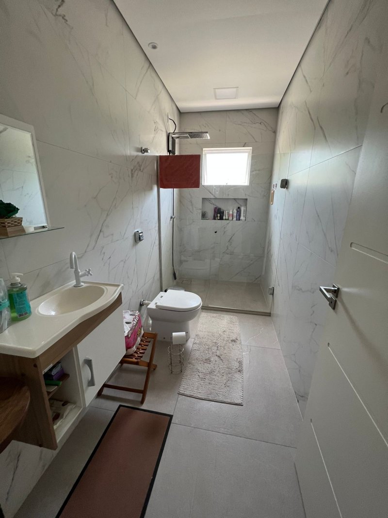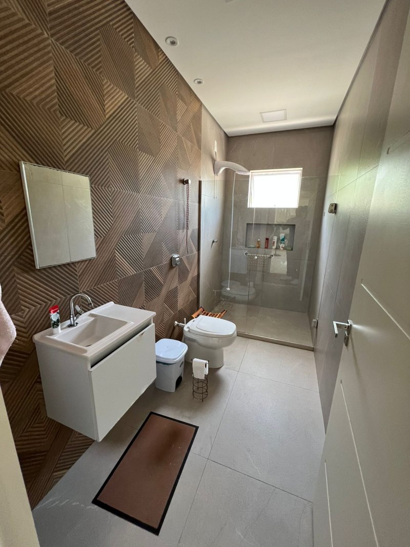 Casa com 3 quartos, sendo 1 suite master com closet, banheiro social, lavabo, sala e cozinha conjugados.
