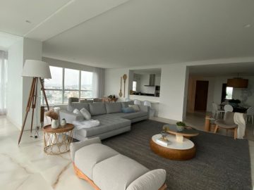 Com 187m² de área privativa e 286m² de área total, o apartamento dispõe de 3 suítes espaçosas, 5 banheiros, 2 amplas salas integradas e uma cozinha americana moderna e funcional, perfeita para quem aprecia praticidade sem abrir mão do bom gosto.