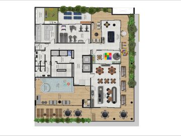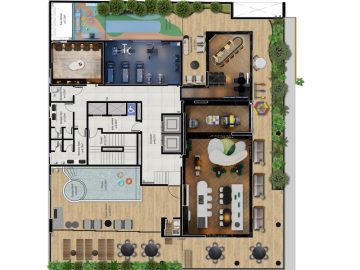 - Lounge e varanda com vista panorâmica: momentos de relaxamento e contemplação com a melhor vista da cidade.