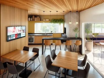O Safira Residence convida você a viver bons momentos sem sair de casa. Celebre ocasiões especiais no salão de festas localizado na cobertura, aproveite o espaço gourmet com amigos ou desfrute da churrasqueira privativa em encontros íntimos. Tudo em um ambiente moderno e acolhedor, com acabamentos cuidadosamente selecionados.