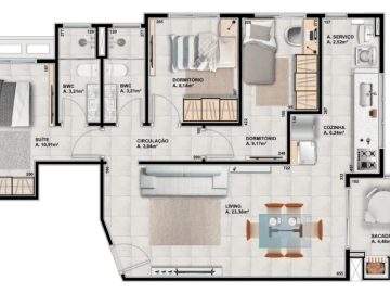 Os ambientes amplos e bem distribuídos proporcionam uma sensação única de aconchego e harmonia. A sala de estar e jantar integradas criam o espaço ideal para reunir a família e receber amigos com estilo. A cozinha funcional se conecta perfeitamente à área social, unindo praticidade e elegância. São 3 dormitórios, incluindo uma suíte moderna e acolhedora, que garantem o descanso e a privacidade que você merece. A sacada com churrasqueira é o convite perfeito para momentos de lazer e descontração, 1 banheiros social e 1 vaga de garagem coberta completam o imóvel com conforto e segurança.