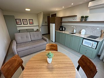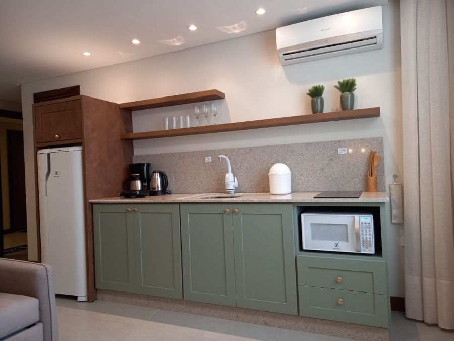 Os apartamentos, com 30,70m² privativos, foram projetados para entregar o essencial com sofisticação. Totalmente mobiliados, climatizados e decorados, contam com piso porcelanato, teto rebaixado em gesso e cozinha completa,tudo pronto para morar ou começar a rentabilizar.