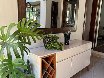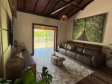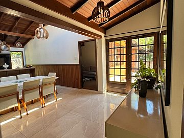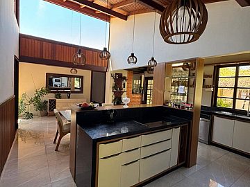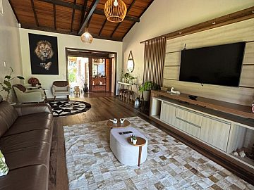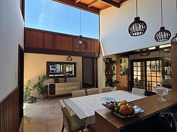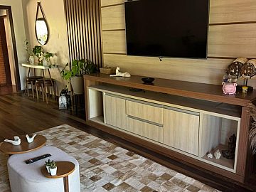 Ao cruzar os portões, o cuidado com cada detalhe se revela de forma imediata. Os ambientes internos são amplos, bem iluminados e harmoniosos, contando com duas salas, sendo uma delas com lareira, que cria um ambiente acolhedor e elegante para os dias mais frescos. Esses espaços proporcionam cenários distintos para convivência social e momentos de relaxamento em família, sempre com privacidade e conforto.
