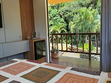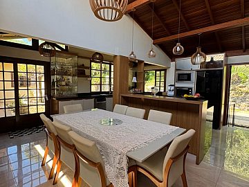 O lazer externo é um verdadeiro destaque. O jardim cuidadosamente planejado, com piscina, envolve a residência e cria um cenário dedicado ao entretenimento e à celebração. O espaço ainda conta com um lago ornamental com tartarugas e carpas, além de acesso a trilhas, proporcionando uma conexão rara e privilegiada com a natureza.