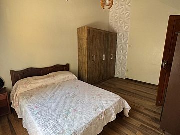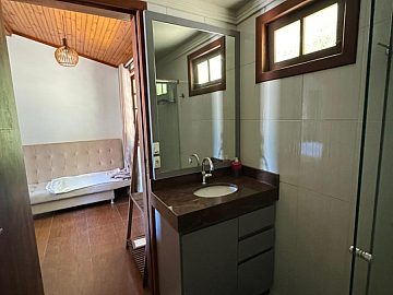 A casa dispõe ainda de cozinha funcional, área gourmet com churrasqueira, ideal para receber, e duas vagas de garagem fechadas, reforçando a praticidade do dia a dia.